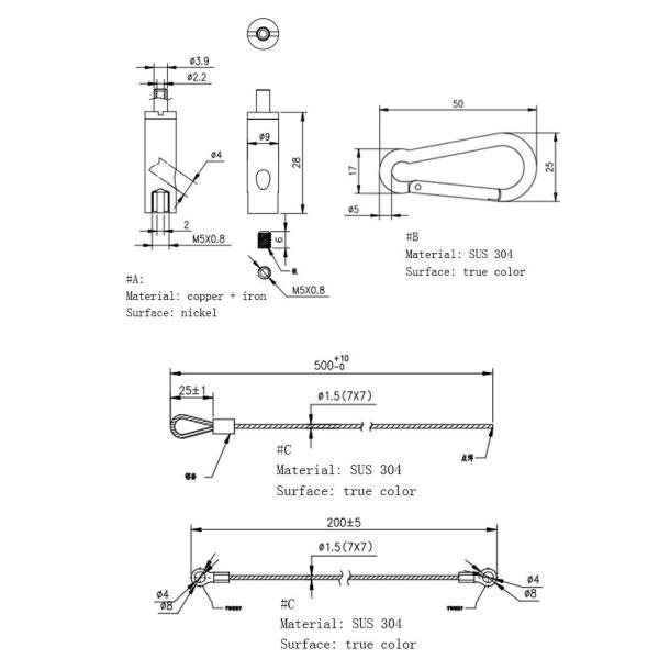 2m Brass Air Cable Suspension Kit Hardware With 2 Carabiner Custom Color Images |